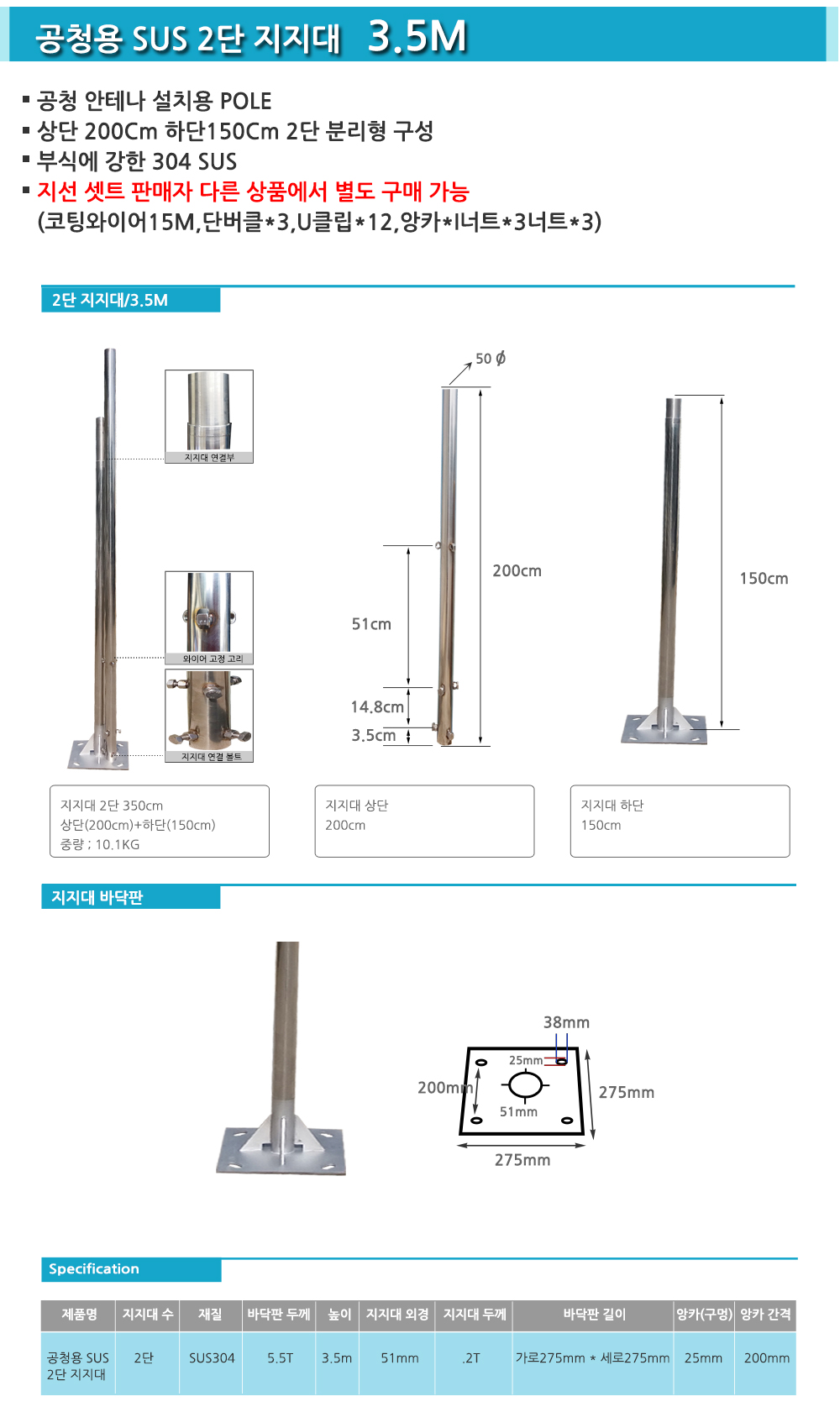 SUS pole,스텐레스폴대,공청용안테나스텐드,3.5M