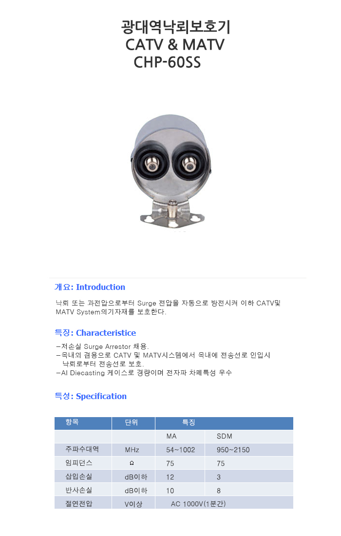 CHP-60SS,광대역낙뢰보호기