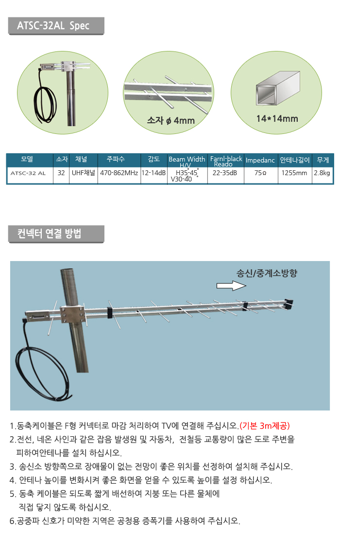 ATSC-32 AL UHF안테나/공청용/12~14dB