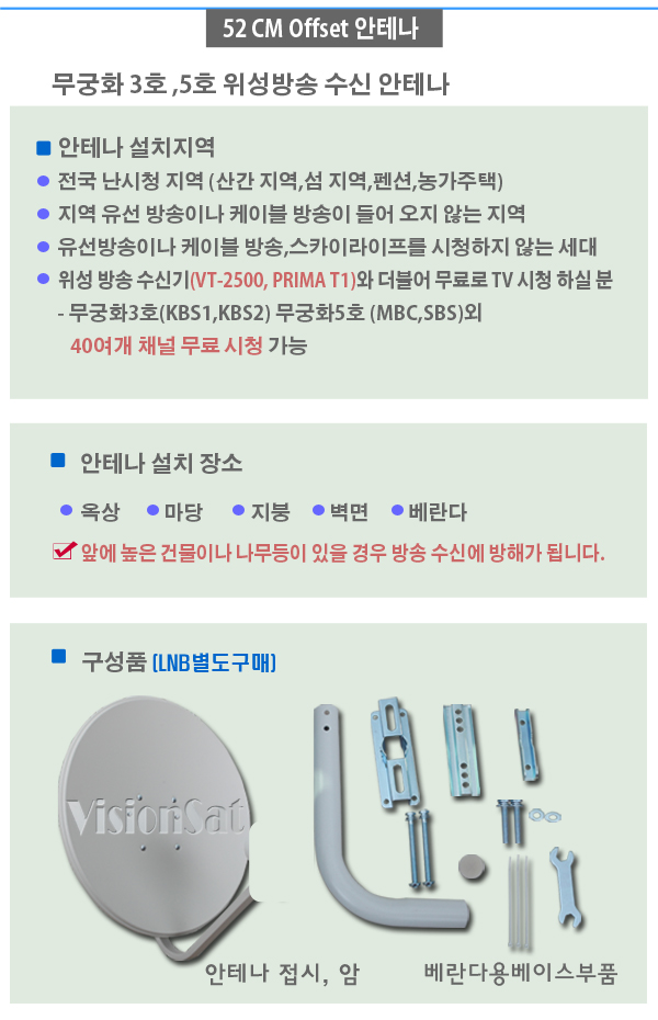 52안테나,무궁화 위성 수신,기본(베란다형베이스)