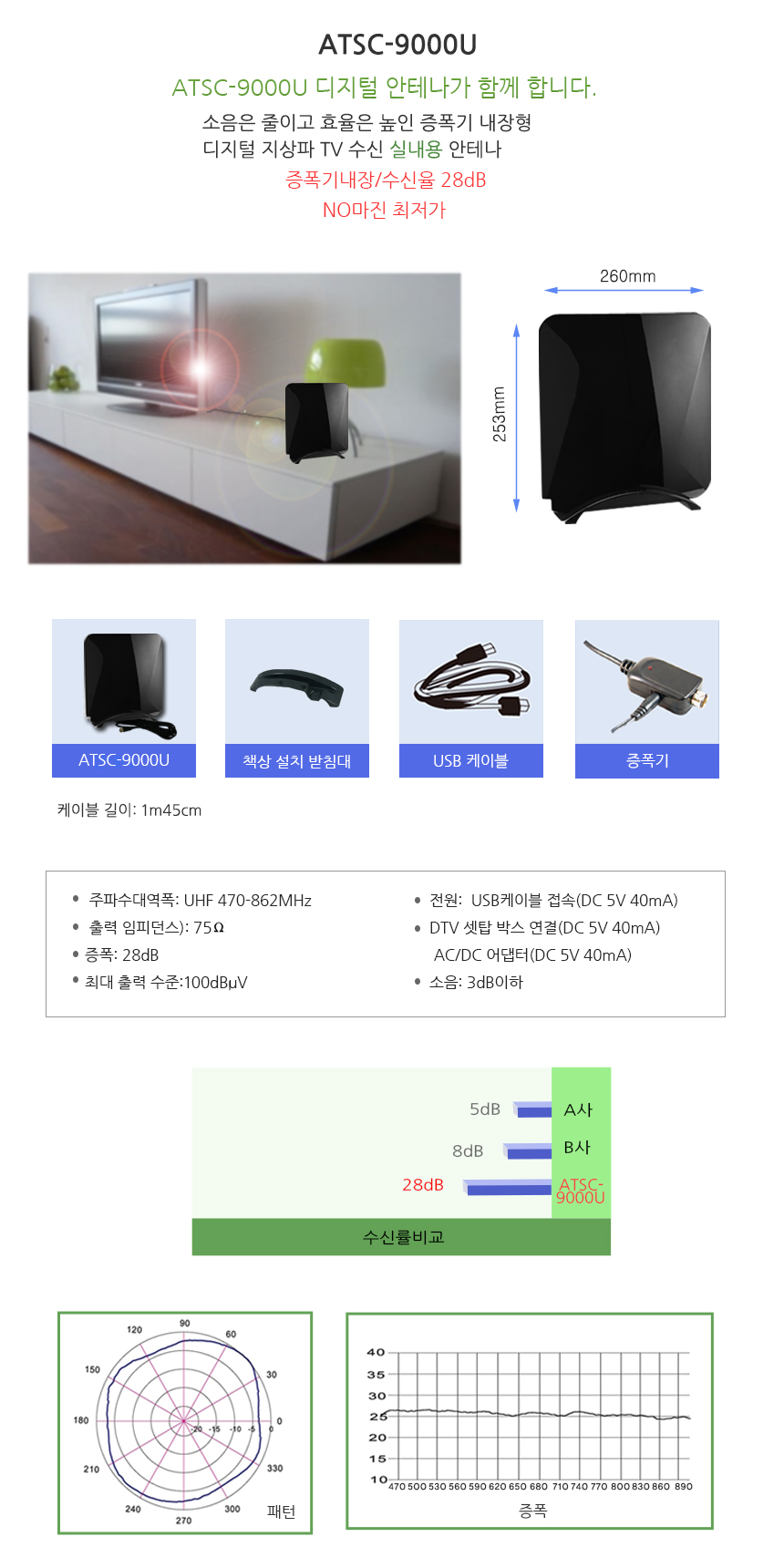 ATSC-9000U,실내용,지상파,UHF