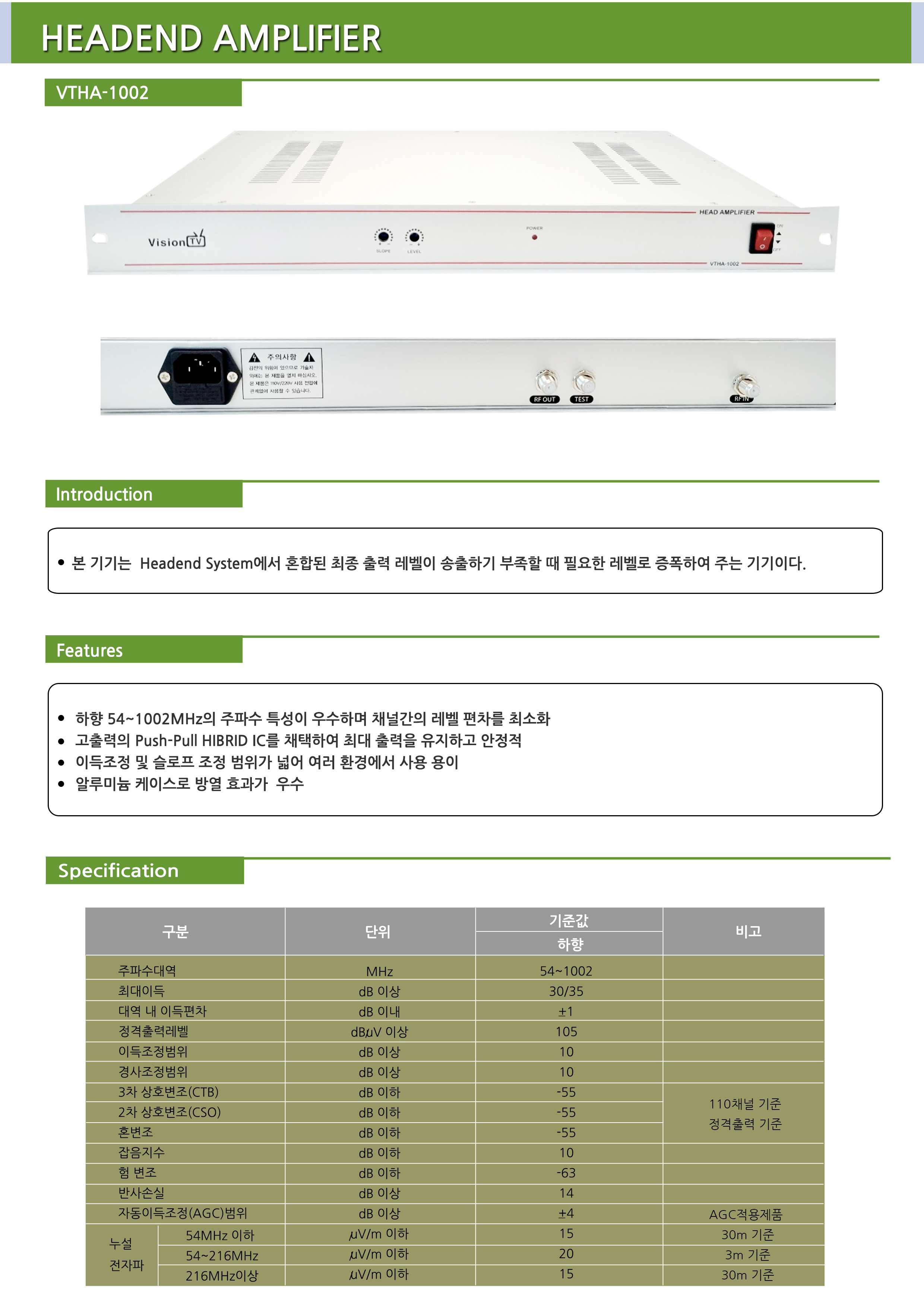 HEADENDAMPLIFIER,VTHA-1002,헤드엠프