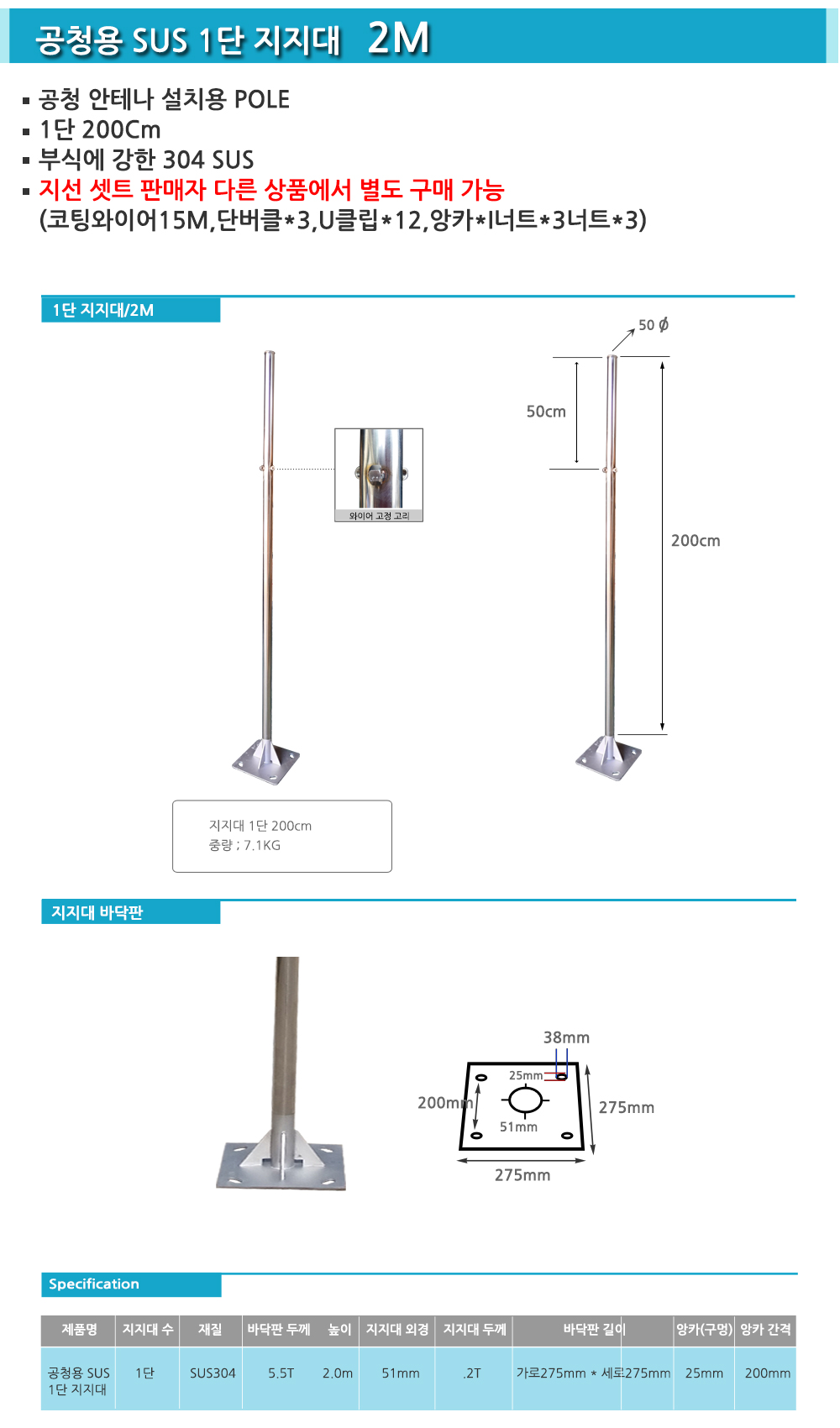 SUS pole,스텐레스폴대,공청용안테나스텐드,2M