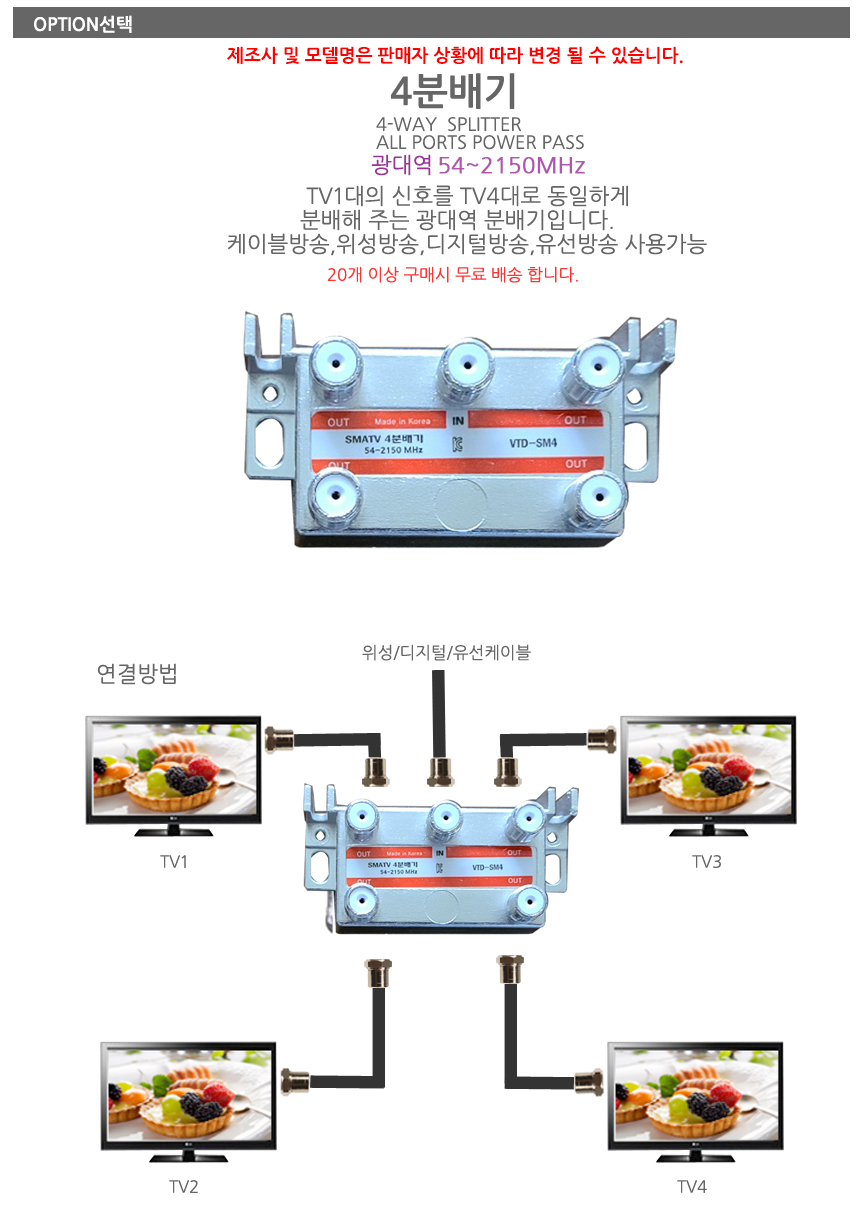VTD-SM4 (4분배기),광대역,TV1대의신호를4대로분배