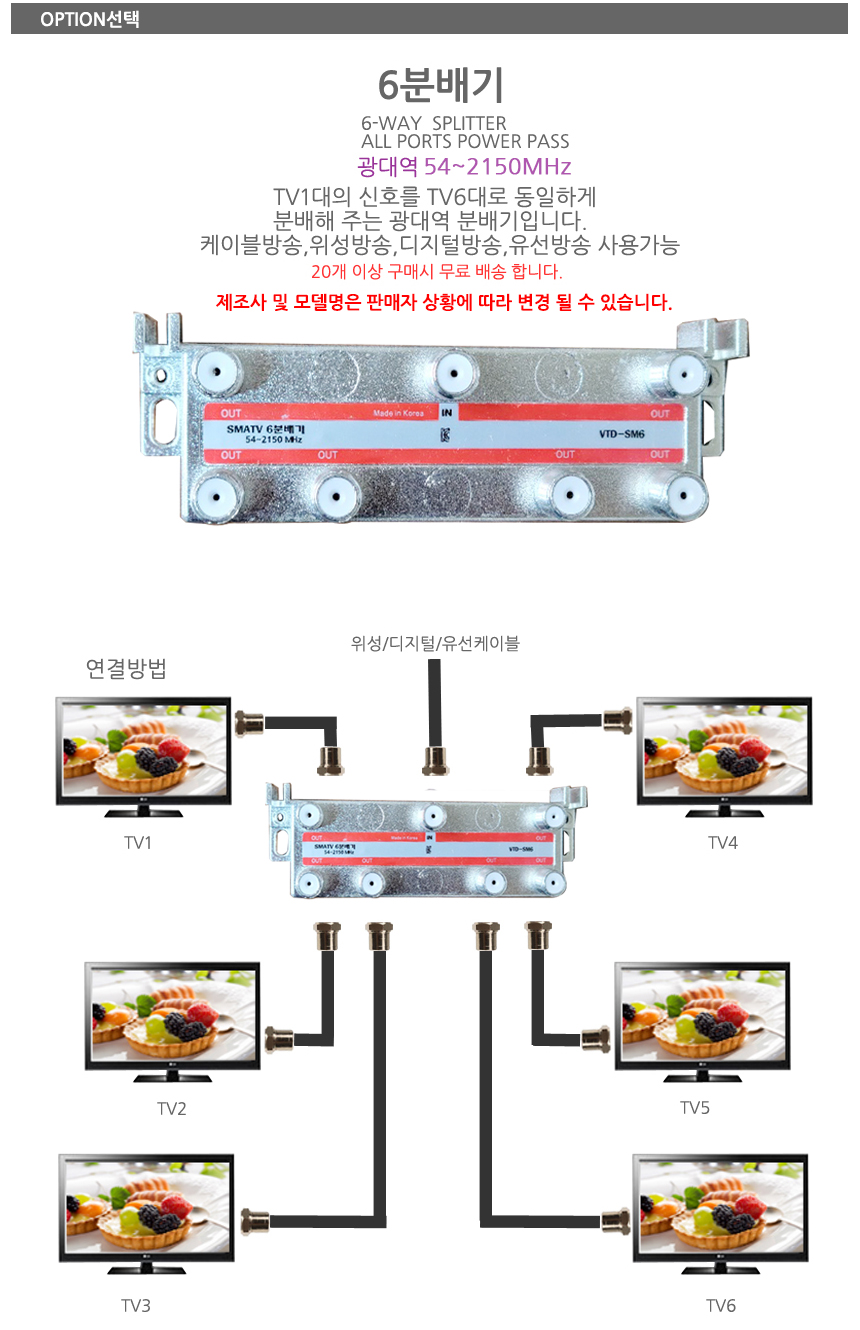 VTD-SM6 ( 6분배기),광대역,TV1대의 신호를 6대로 분배