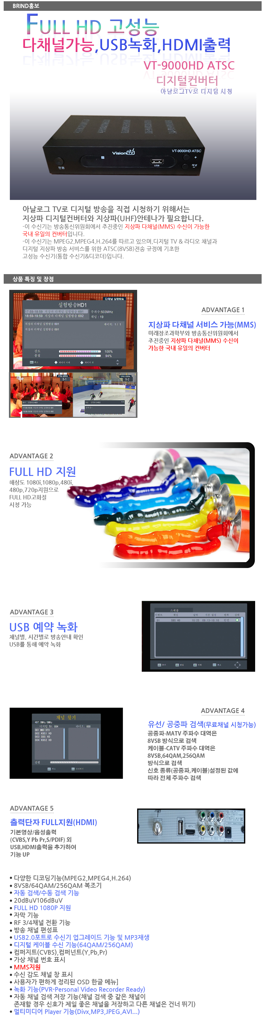 VT-9000HD ATSC,디지털컨버터,D2A,DTV,HDTV,지상파전환,다채널가능